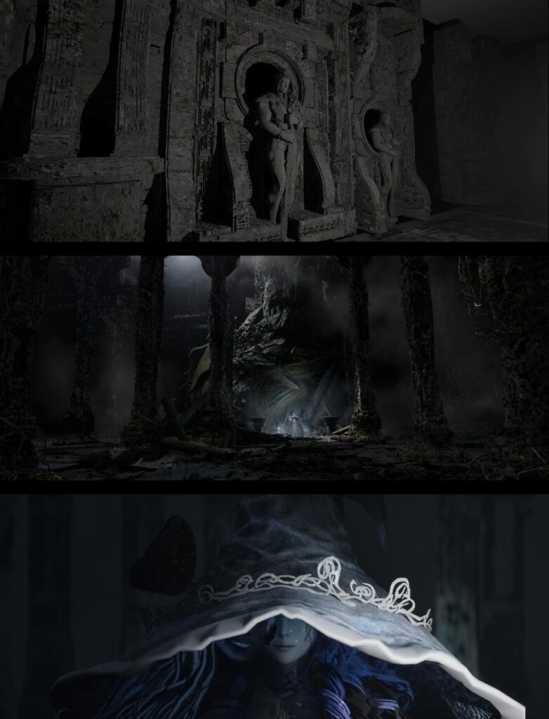 朝拜:使用ue5制作, C4D制作layout并使用材质节点制作水坑贴图,调整整体灯光,seq最终渲染
