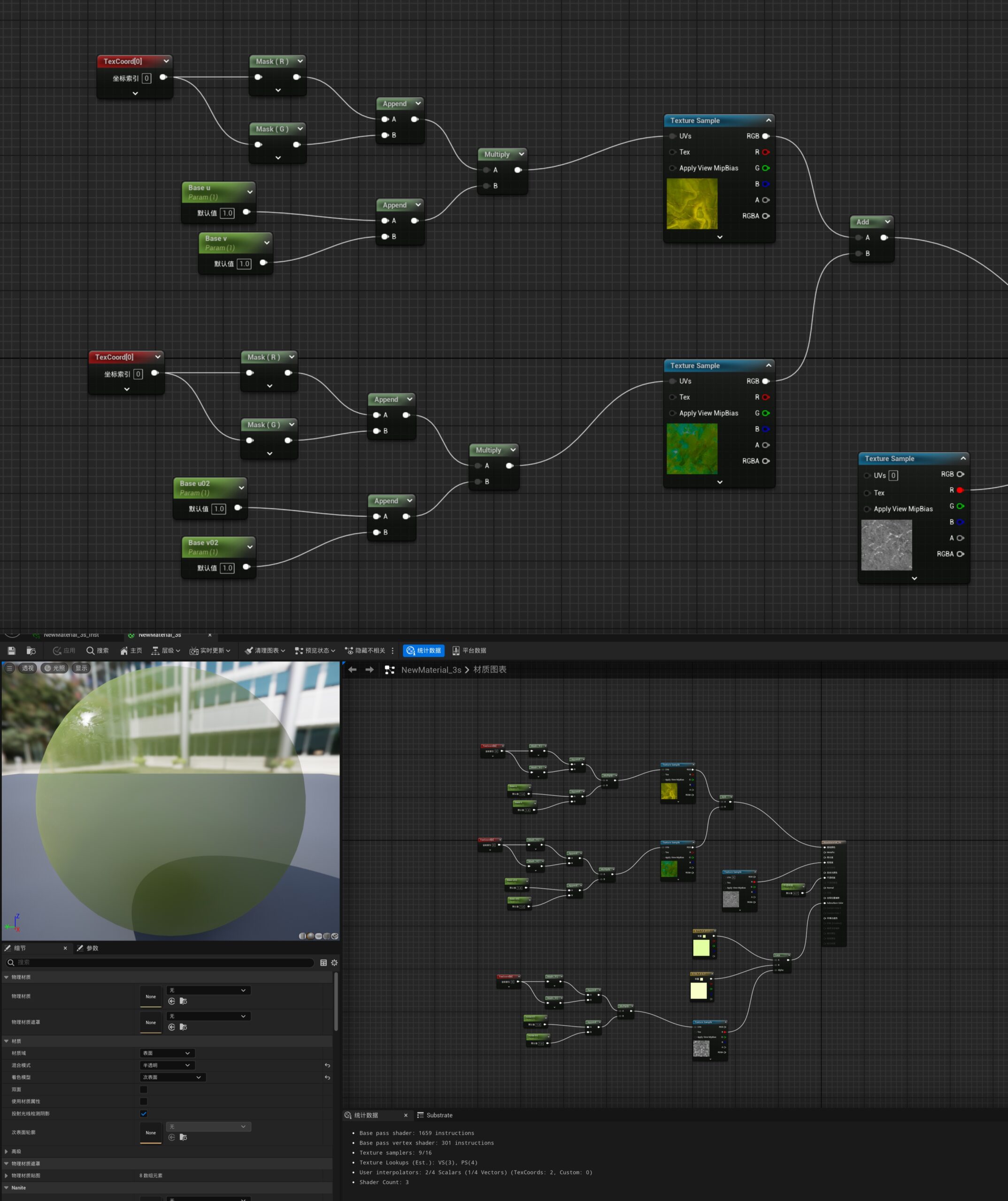 - 熟练使用UnrealEngine4/5进行地形搭建,场景Layout细化并进行渲染,使用蓝图与函数节点从零开始构建各种3s、玻璃玉石材质、透贴,并用PathTracing渲染成品